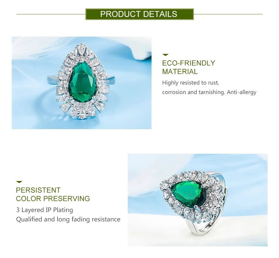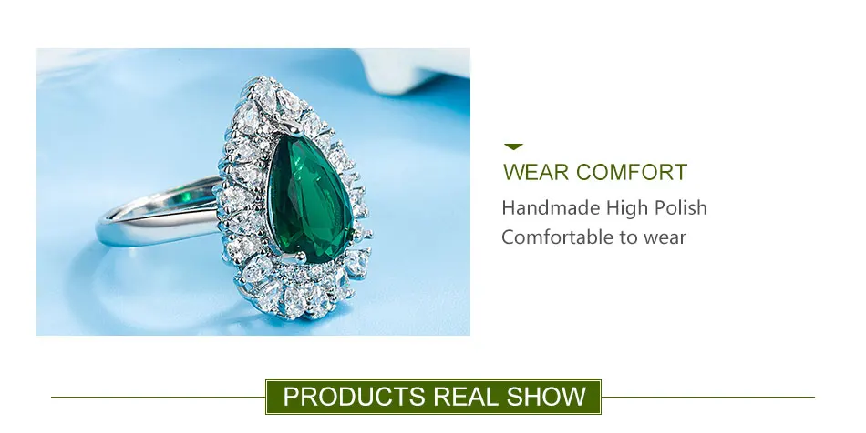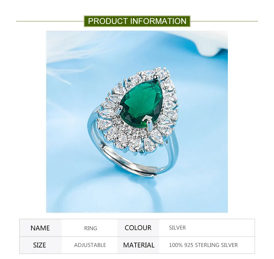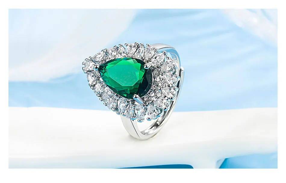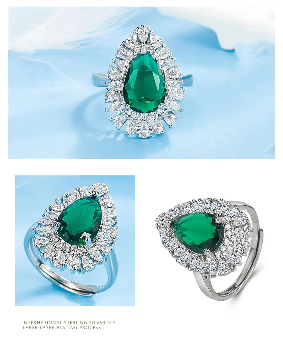 Zdadan Sterling Silber Wasser tropfen Smaragd verstellbarer Ring für Damen Modeschmuck